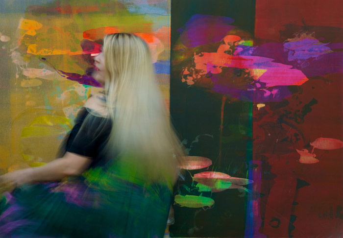 Manning Clark values the abstract painterly qualities that monoprinting gives her but it’s her experimental and expressive use of the medium that works draw the viewer into the vivacious warmth of the artist’s imagination.